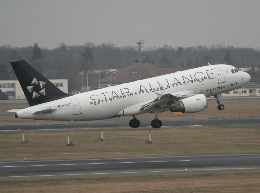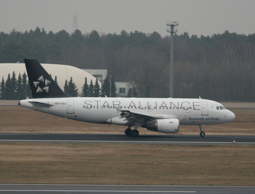 Brussels Airlines A319 (OO-SSC) in Star Alliance-Lackierung am 23.02.2014 in Berlin-Tegel.