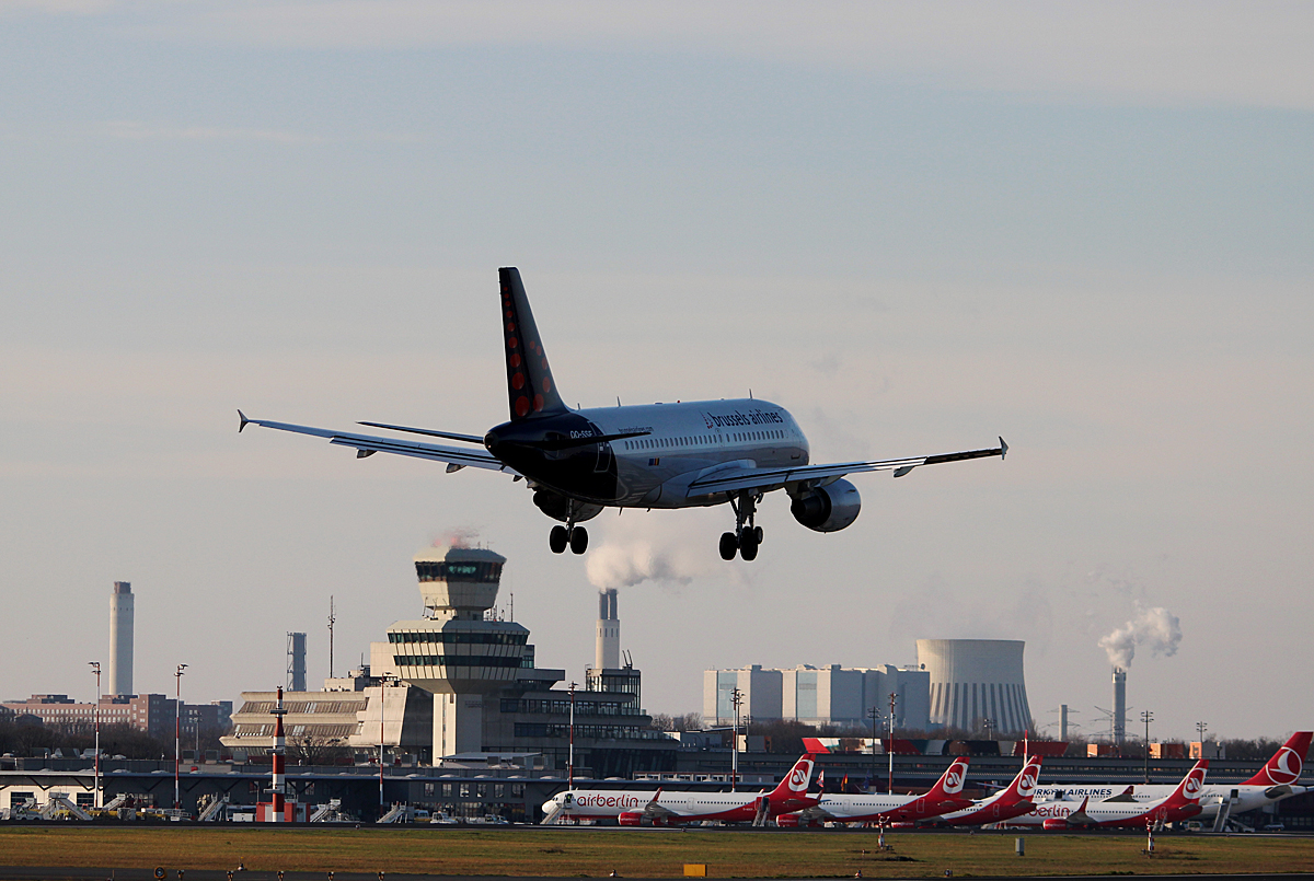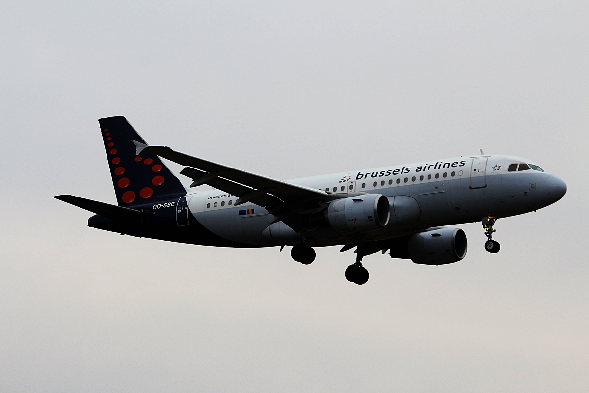 Brussels Airlines A 319-111 OO-SSE bei der Landung in Berlin-Tegel am 06.12.2015