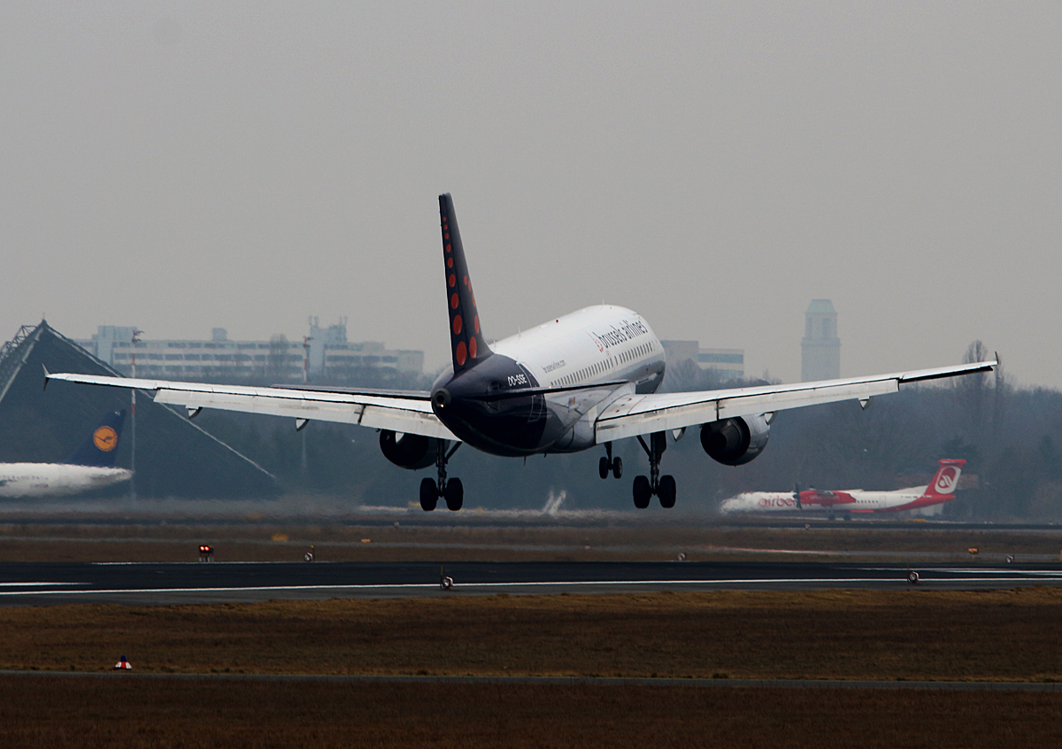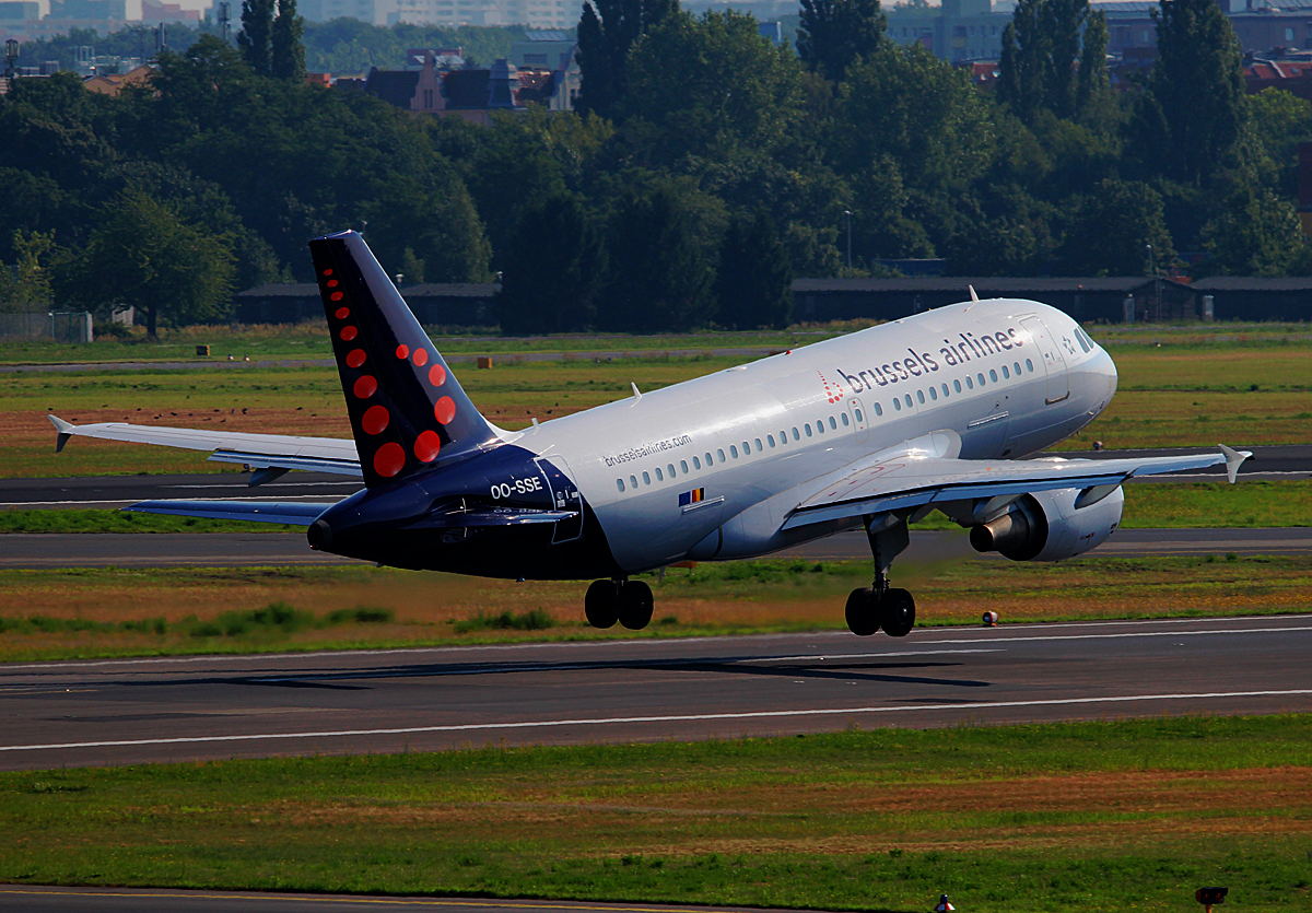 Brussels Airlines A 319-112 OO-SSE beim Start in Berlin-Tegel am 11.07.2014