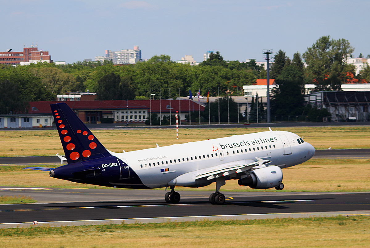 Brussels Airlines A 319-112 OO-SSG bei der Landung in Berlin-Tegel am 18.06.2013