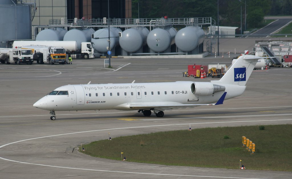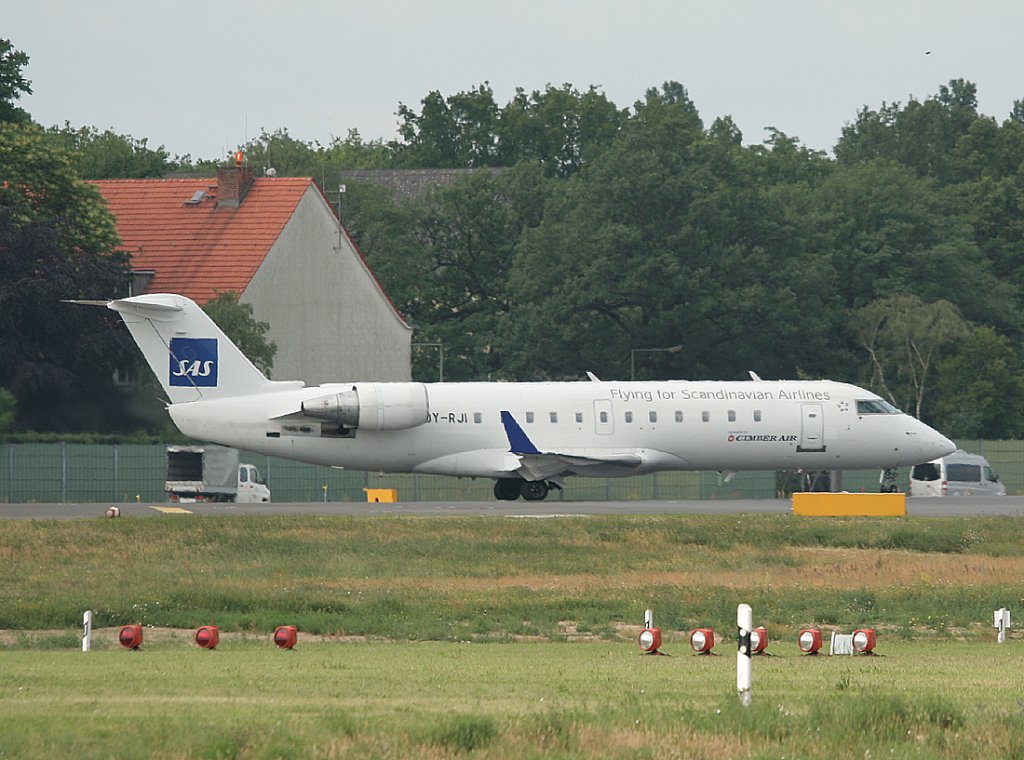 Cimber Air Canadair Regjet CRJ100 OY-RJI bei der Ankunft in Berlin-Tegel am 01.05.2010. Hier in Diensten von SAS.