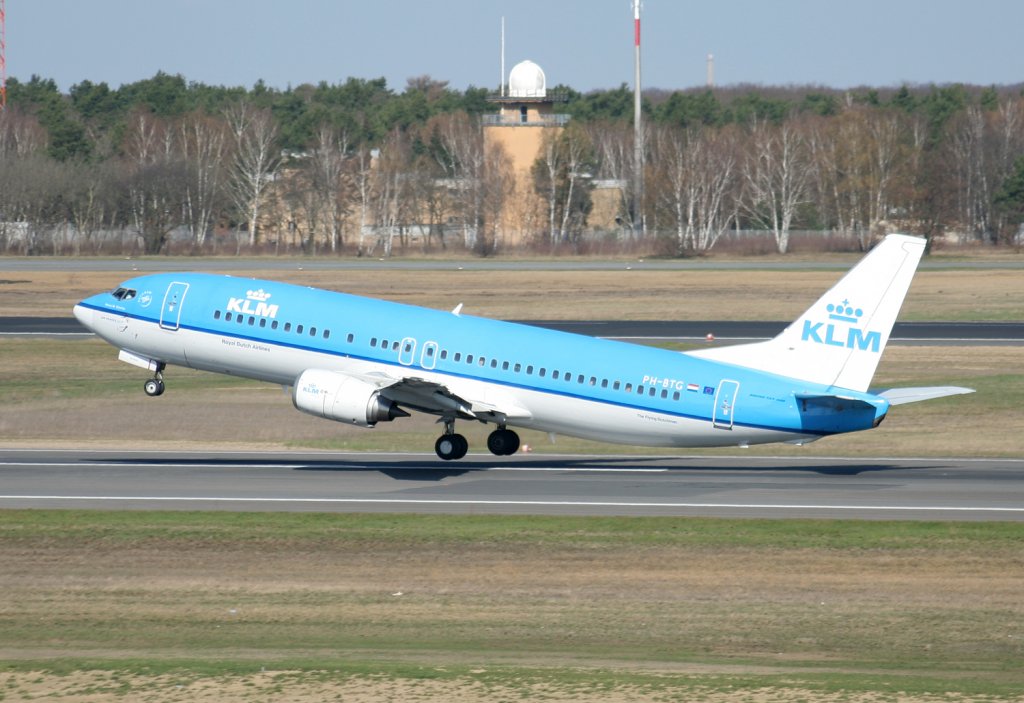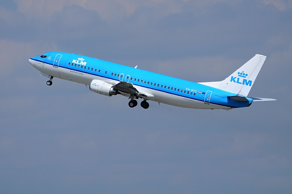 KLM, PH-BTG, Boeing 737-406. Eine schöne Bemalung der Niederländischen Gesellschaft, die auch vor dem Himmelsblau noch absticht. 27.4.2010 Jürgen Walter