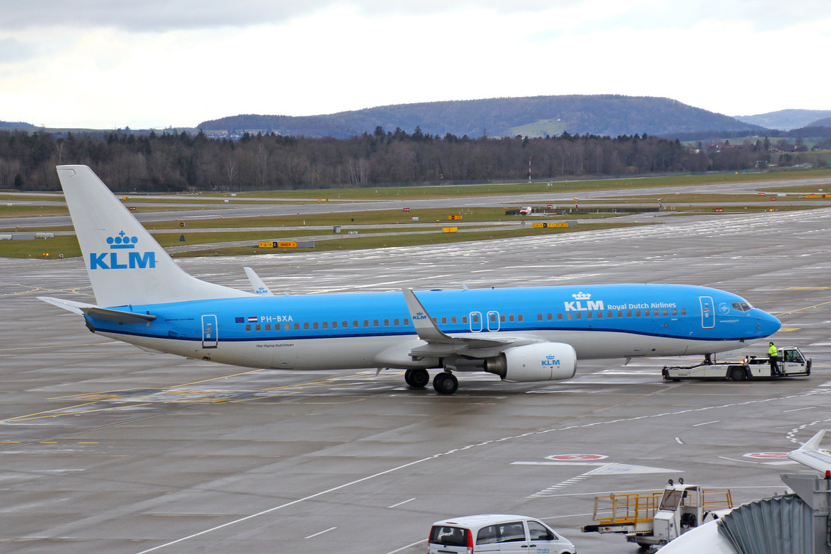 KLM Royal Dutch Airlines, PH-BXA, Boeing 737-8K2, "Zwaan / Swan", 21.Januar 2018, ZRH Zürich, Switzerland.