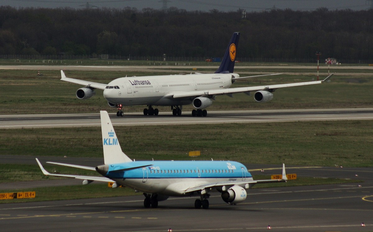 KLM Cityhopper,PH-EZI,(c/n 19000322),Embraer ERJ-190-100,11.04.2015,DUS-EDDL,Düsseldorf,Germany(oben:Lufthansa,D-AIGT,airbus A340-313)