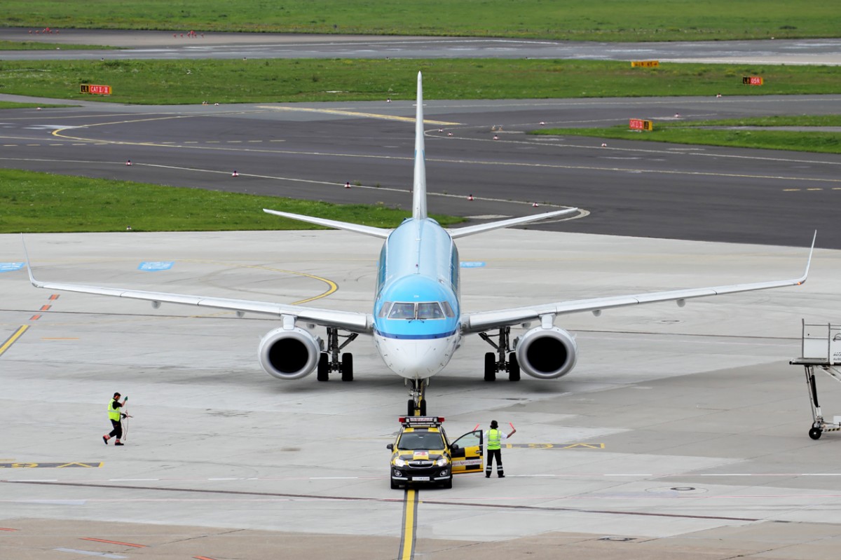 KLM Cityhopper PH-EZN erreicht seine Parkposition in Düsseldorf 5.9.2015