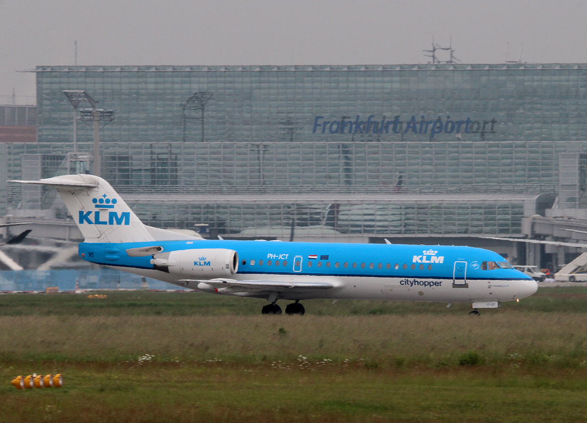 KLM-Cityhopper Fokker 70 PH-JCT bei der Ankunft in Frankfurt am 11.06.2013