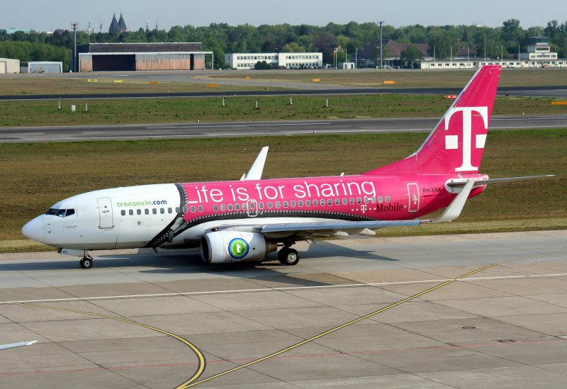 PH-XRA von Transavia mit neuer Sonderbemalung "Delfsail 2009" in Amsterdam 31.5.2009 und habe sie noch am 1.5.2009 mit T-Mobile Farben fotografiert