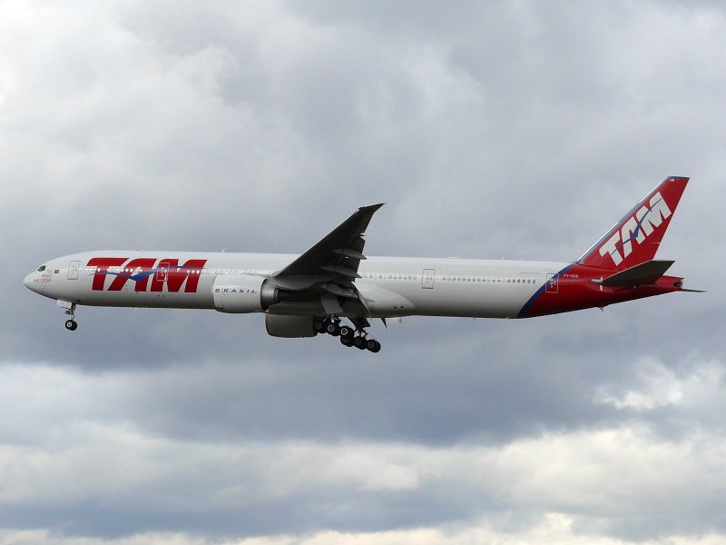 TAM B 777-32W(ER) PT-MUB bei der Landung in Frankfurt am Main am 16.08.2012