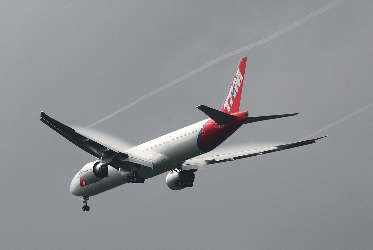 TAM B 777-32W(ER) PT-MUC bei der Landung in Frankfurt am 09.06.2013