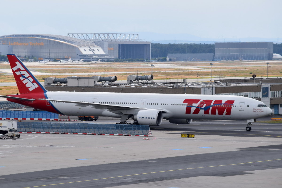 PT-MUH TAM Linhas Aéreas Boeing 777-32W(ER) zum Gate am 01.08.2016 in Frankfurt