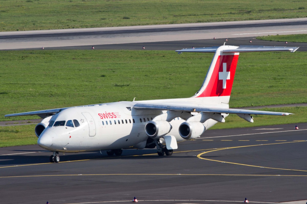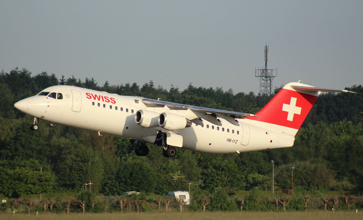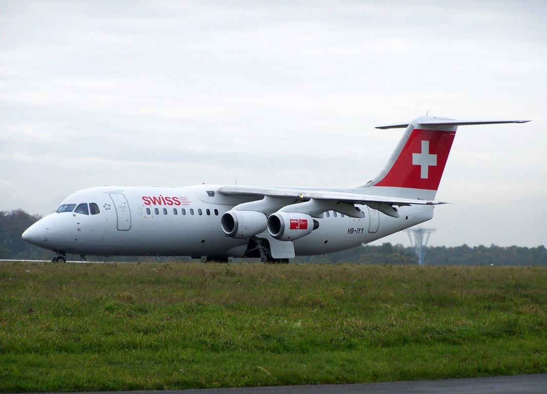 BAe Avro 146-RJ 100 der Swiss, HB-IYV, short final DUS - 01.10.2015