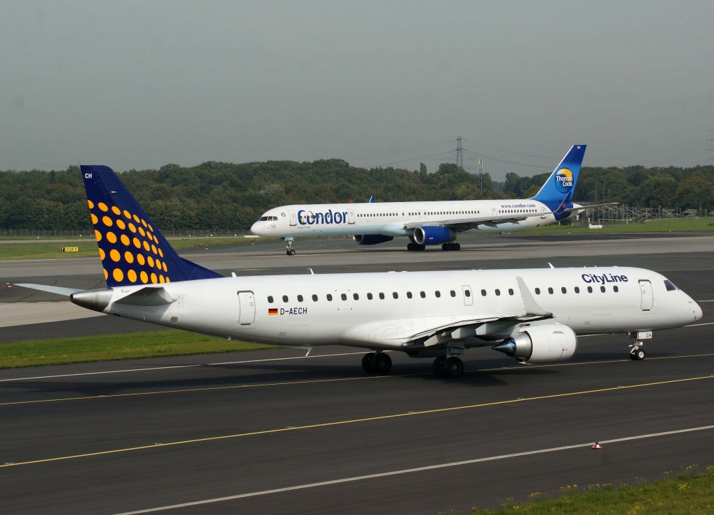 Lufthansa Regional (CityLine), D-AECH (am Start Condor  D-ABOE ), Embraer RJ-190 LR, 2010.09.23, DUS-EDDL, Düsseldorf, Germany