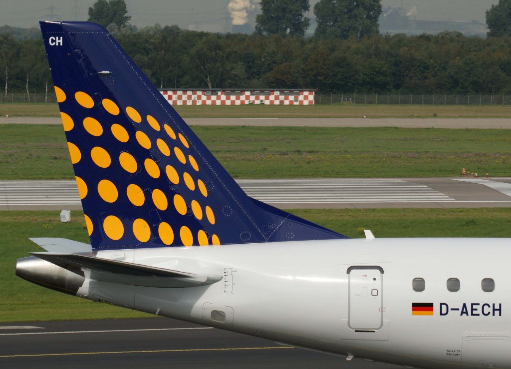 Lufthansa Regional (CityLine), D-AECH (am Start Condor "D-ABOE"), Embraer RJ-190 LR, 2010.09.23, DUS-EDDL, Düsseldorf, Germany
