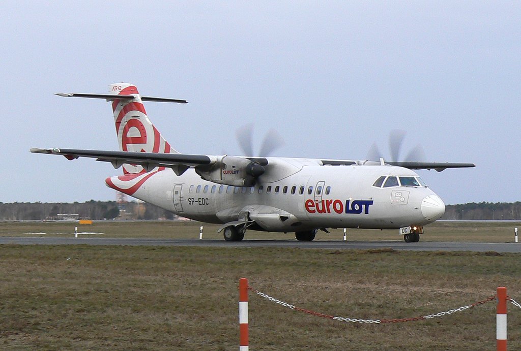 EuroLot ATR 42 SP-EDC am frühen Morgen des 27.02.2010 auf dem Flughafen Berlin-Tegel