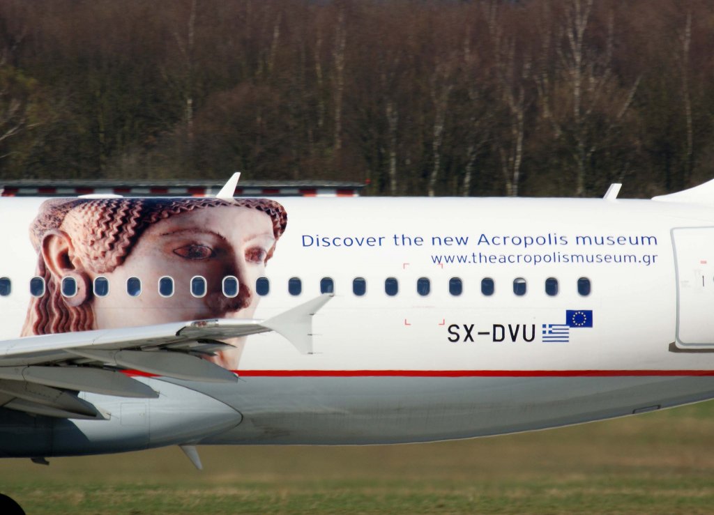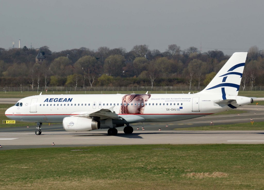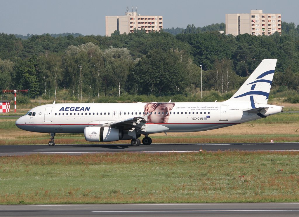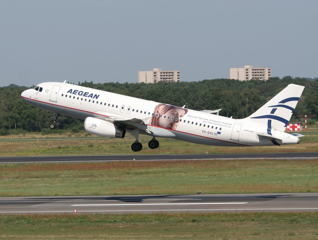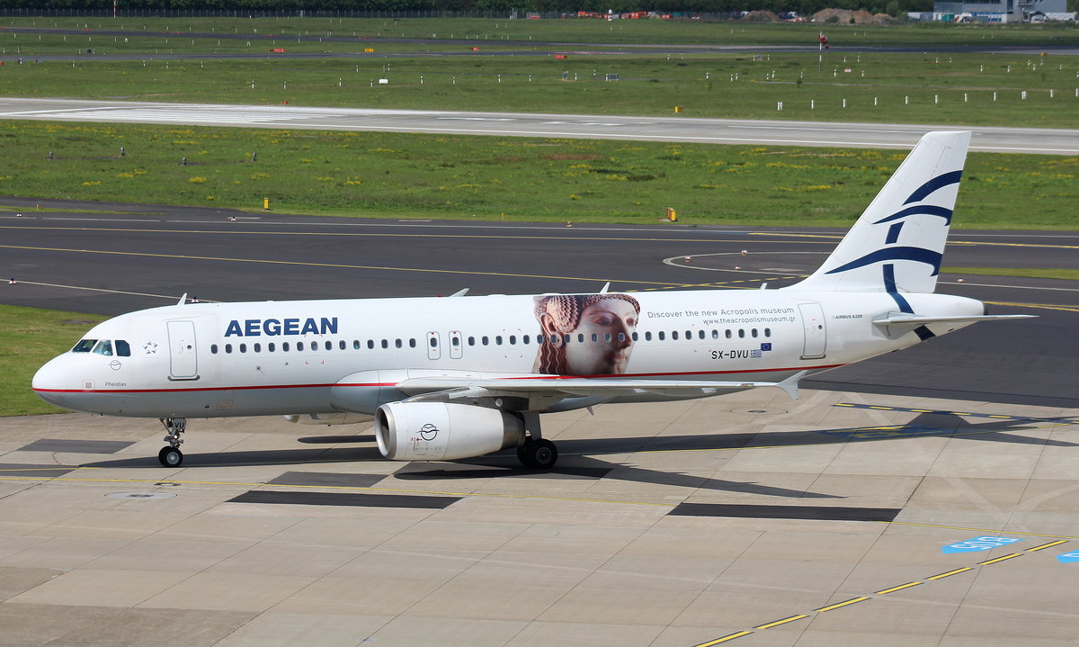 Aegean Airlines, SX-DVU "Pheidias", Airbus A 320-200 (Akropolis-Sticker auf der linken Seite), 20.06.2011, DUS-EDDL, Düsseldorf, Germany