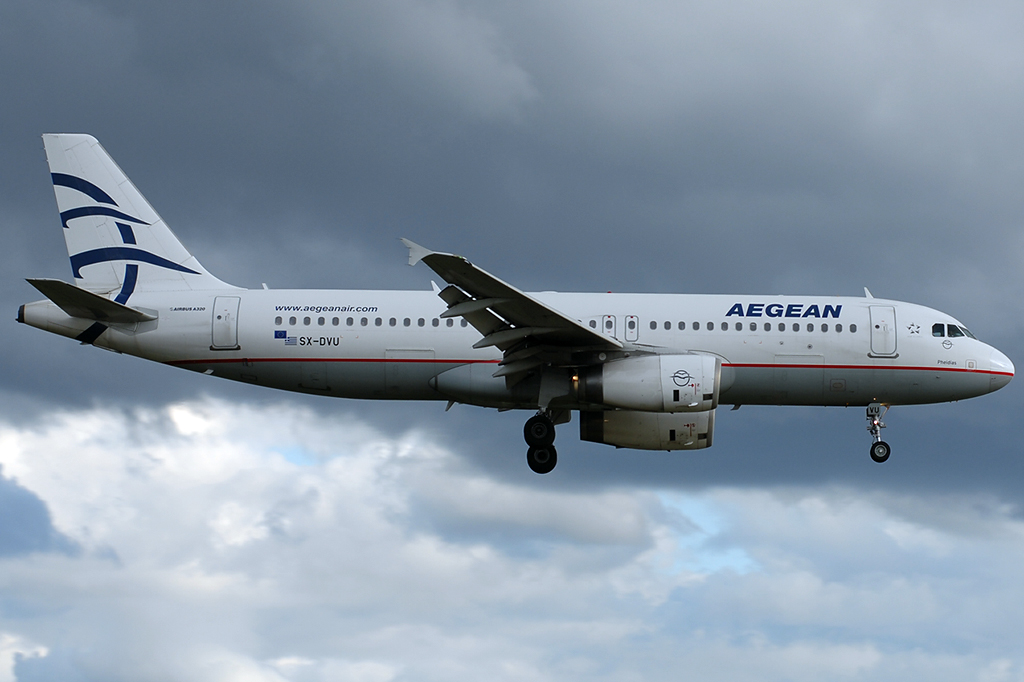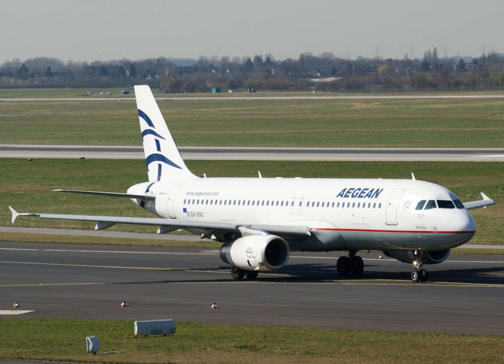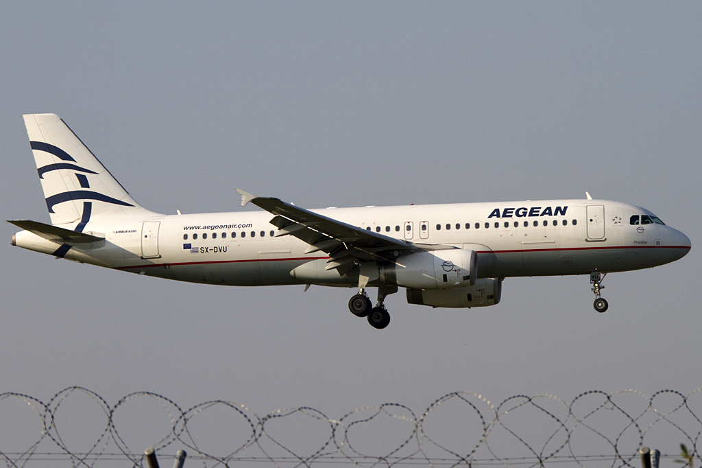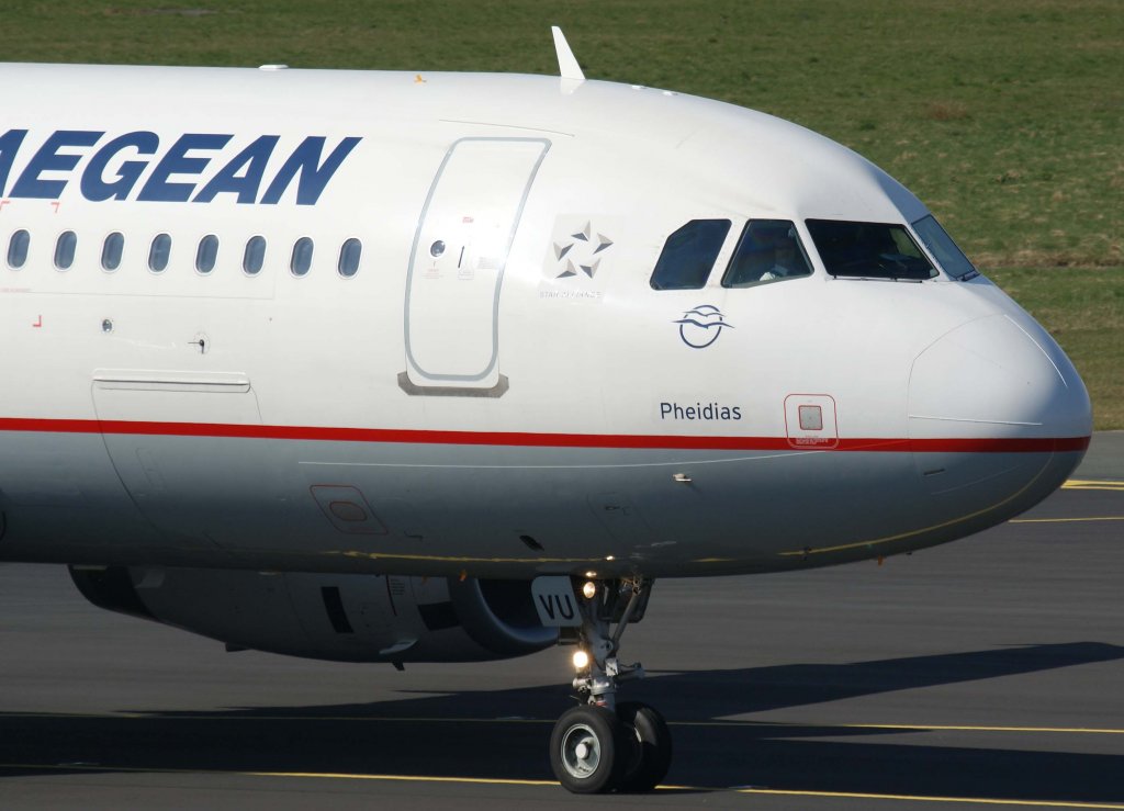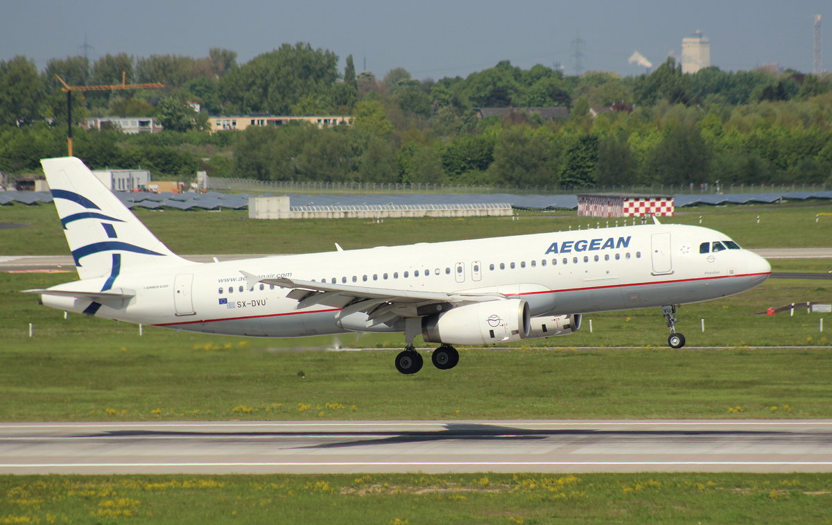 Aegean Airlines, SX-DVU "Pheidias", Airbus A 320-200 (Akropolis-Sticker auf der linken Seite), 20.06.2011, DUS-EDDL, Düsseldorf, Germany