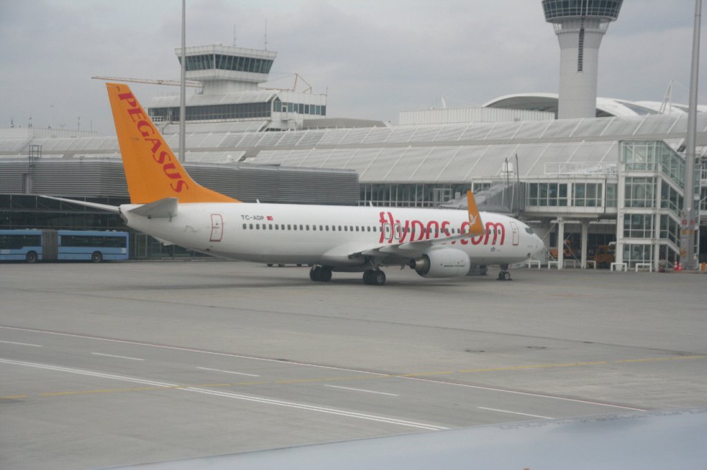 Pegasus Airlines B 737-82R TC-ADP am 10.03.2011 auf dem Flughafen München. Aufgenommen beim Rollen aus dem Germanwings A 319-112 D-AKNN.
