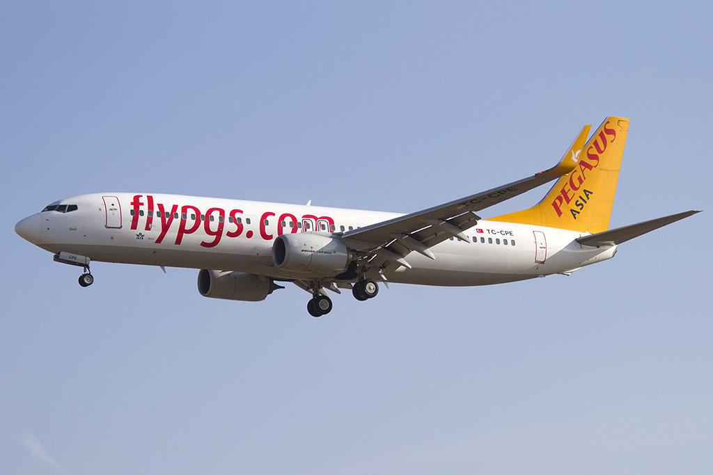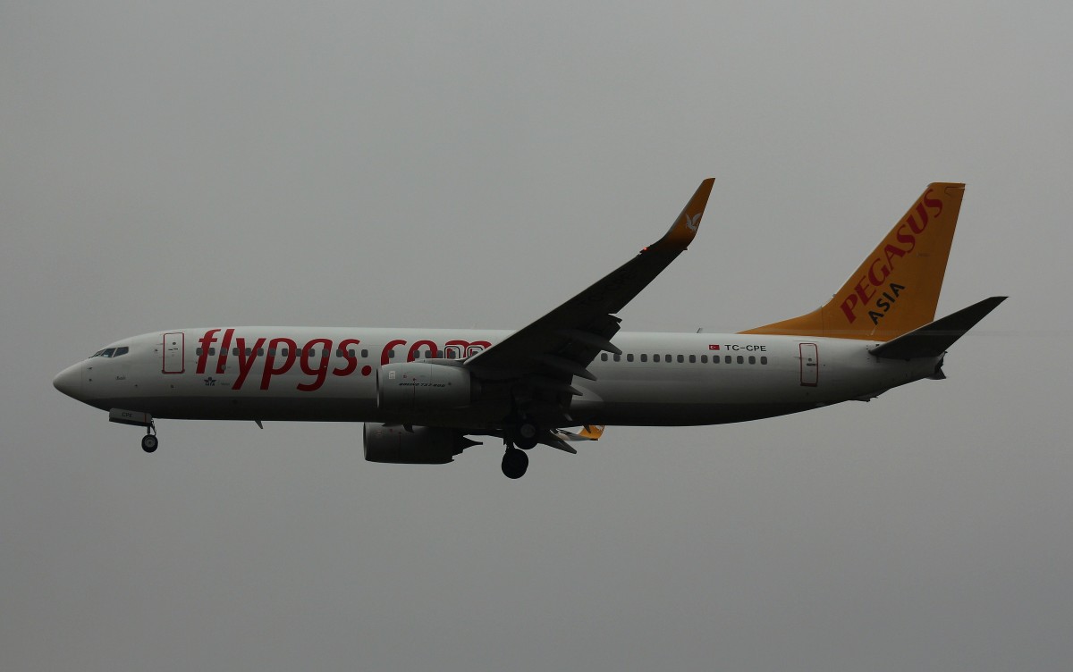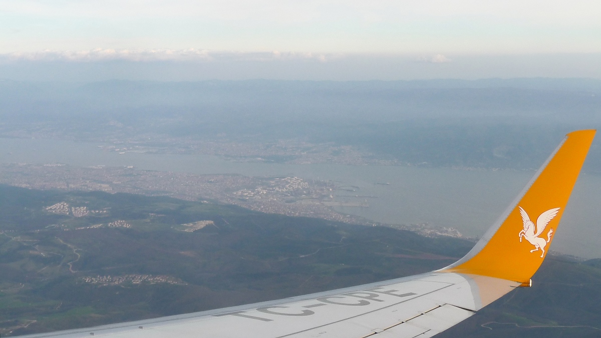 Blick auf die Tragfläche der Pegasus Airlines - TC-CPE - Boeing 737-82R auf dem Landeanflug zum Istanbul-Sabiha Gökçen Airport (SAW) am 30.3.2016