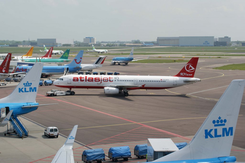 Atlasjet Airlines, TC-ETV  10-th year , Airbus, A 321-200 (buntes Treiben ringsumher), 25.05.2012, AMS-EHAM, Amsterdam (Schiphol), Niederlande