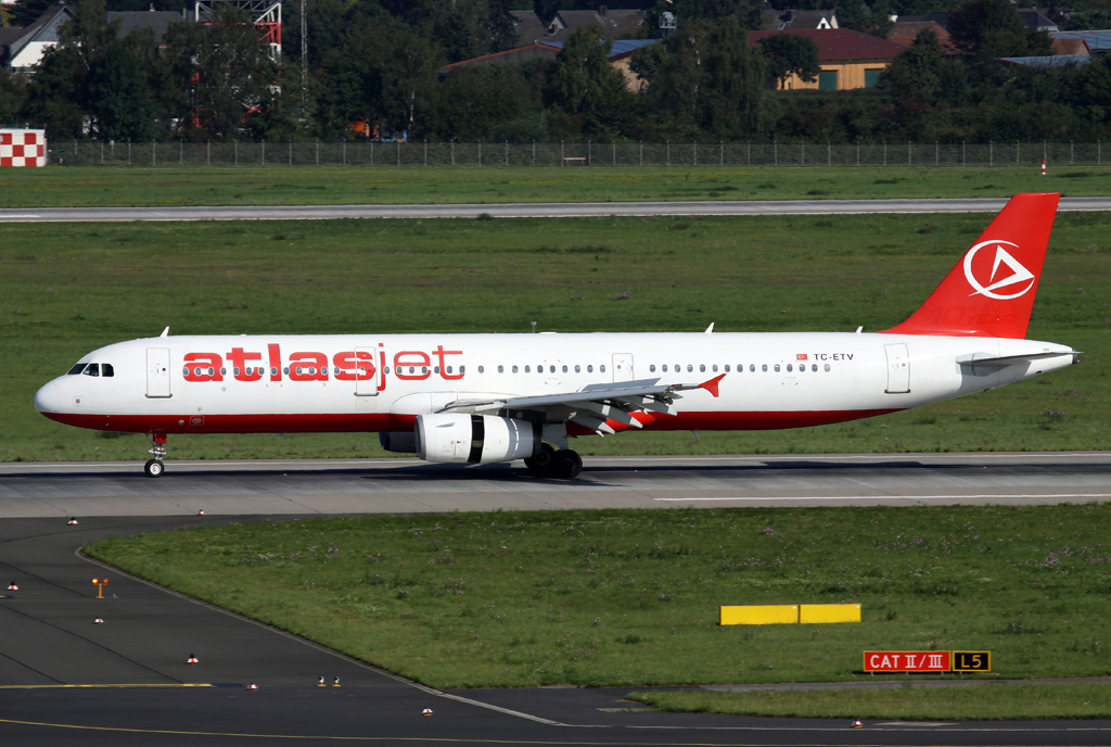 Atlas A-321 TC-ETV bei der Landung auf 23L in DUS / EDDL / Düsseldorf am 20.08.2014