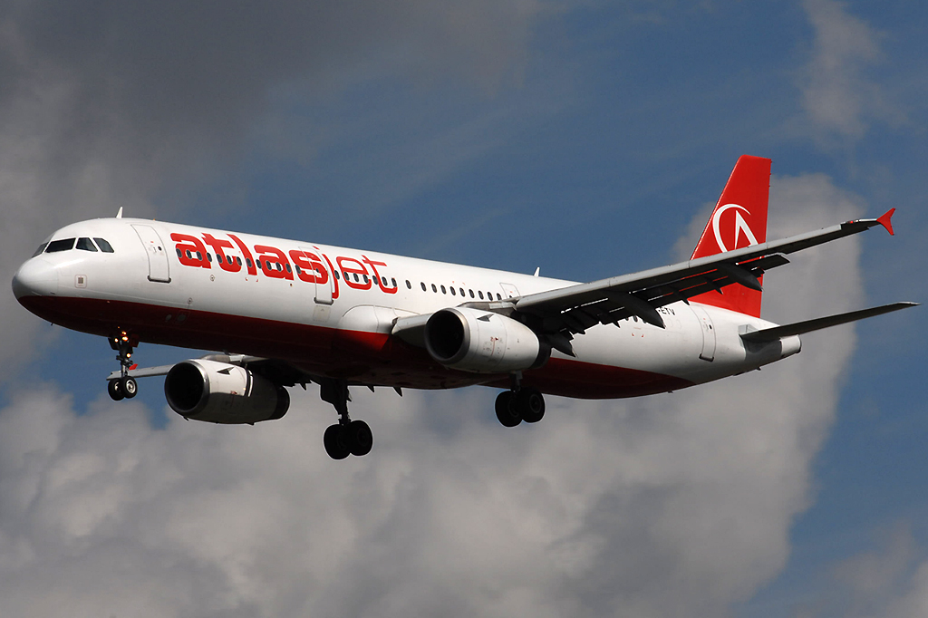 Atlasjet A 321-231 TC-ETV bei der Landung in Berlin-Schönefeld am 03.08.2012