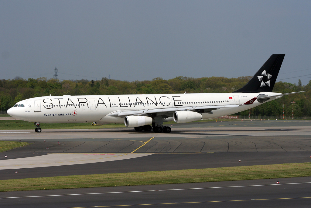 Turkish Star Alliance A340-300 TC-JDL auf der 23L in DUS / EDDL / Düsseldorf am 16.04.2011