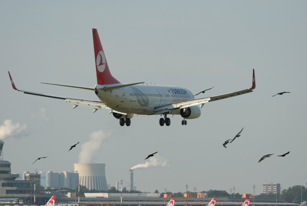 Turkish Airlines B 737-8F2 TC-JFF mit zusätzlichem Flugverkehr kurz vor der Landung in Berlin-Tegel am 17.09.2011