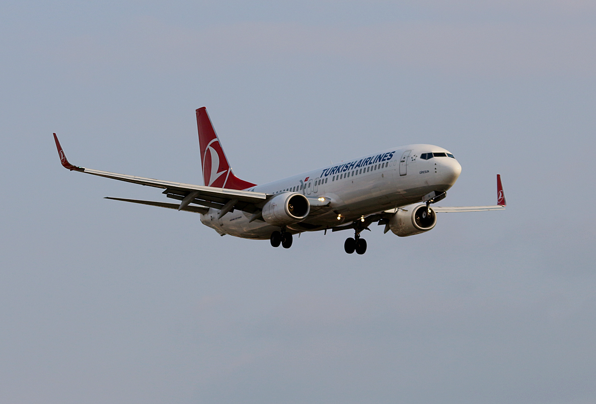 Turkish Airlines B 737-8F2 TC-JFK kurz vor der Landung in Berlin-Tegel am 31.12.2011