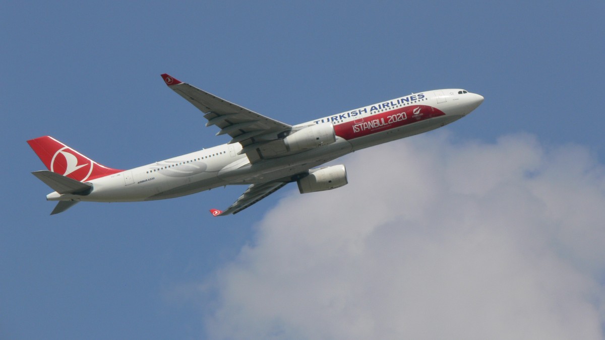 Airbus A330-343E TC-JNI ( Konak ) von Turkish Airlines mit der Werbung für Olympia 2020 in Istanbul am 06.07.2013 beim Start aus Frankfurt. Benny Bubblitz