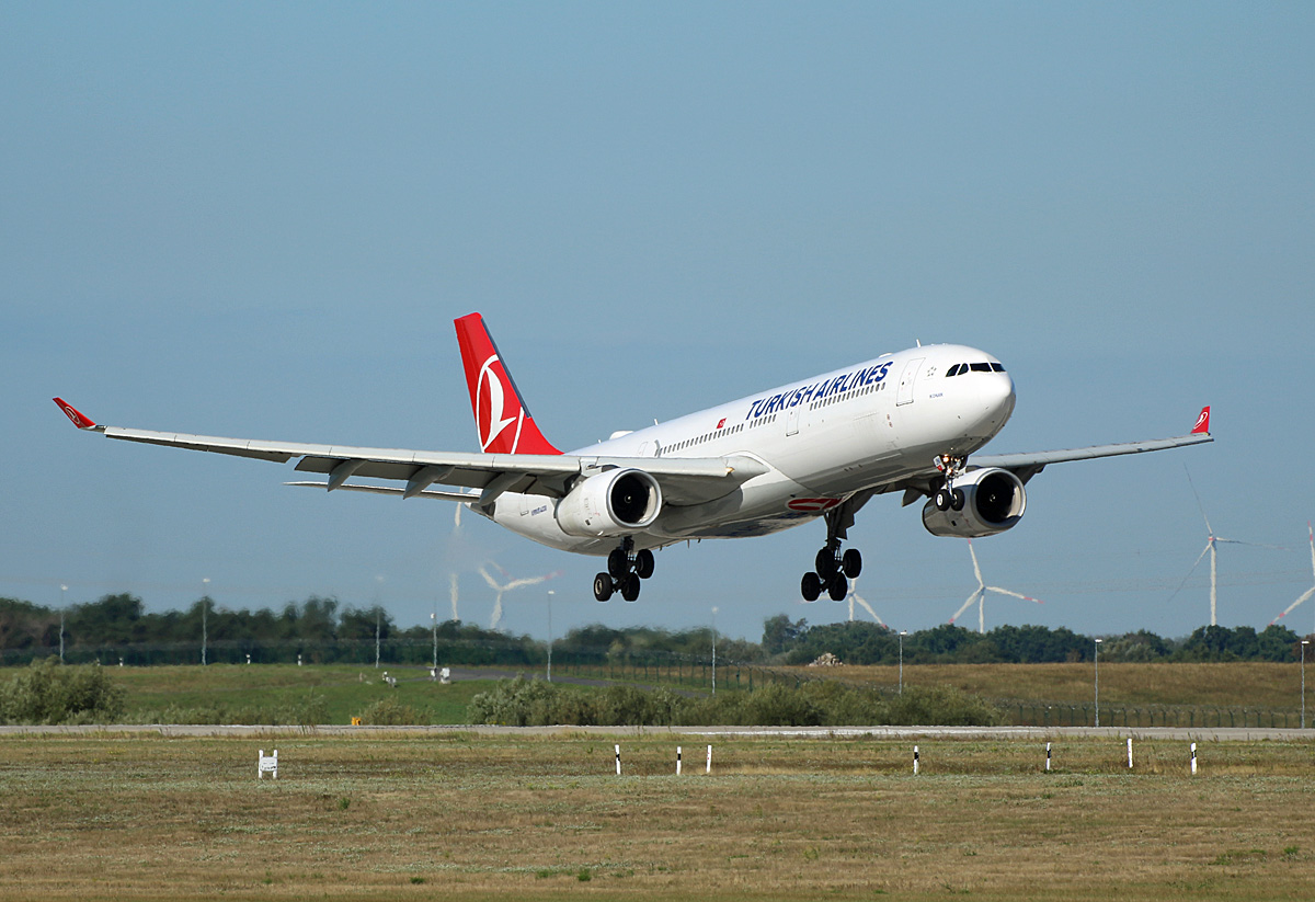 Ein Airbus A330 der Turkish Airlines nach der Landug in Stuttgart. Der Airbus mit der Kennung TC-JNI trägt einen Sondersticker bezgl. der Bewerbung zu den Olympischen Spielen 2020. Stuttgart, 19.07.2013 mathias