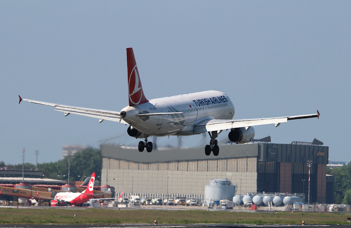 Turkish Airlines A 320-214 TC-JPA bei der Landung in Berlin-Tegel am 19.05.2013