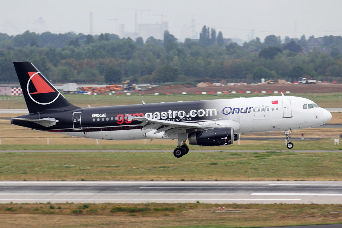 Onur Air Airbus A320-233 TC-ODC bei der Landung in Düsseldorf 3.8.2019