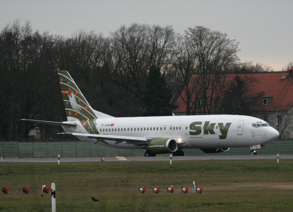 Sky Airlines B 737-49R TC-SKM bei der Landung in Berlin-Schönefeld am 03.08.2012