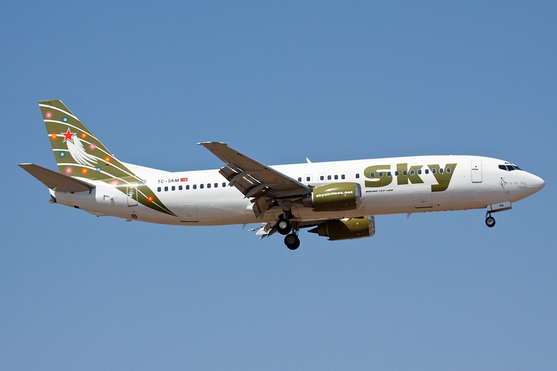 Eine Boeing B734 der Sky Airlines mit der Kennung TC-SKM aufgenommen am 30.05.09 am Stuttgarter Flughafen.