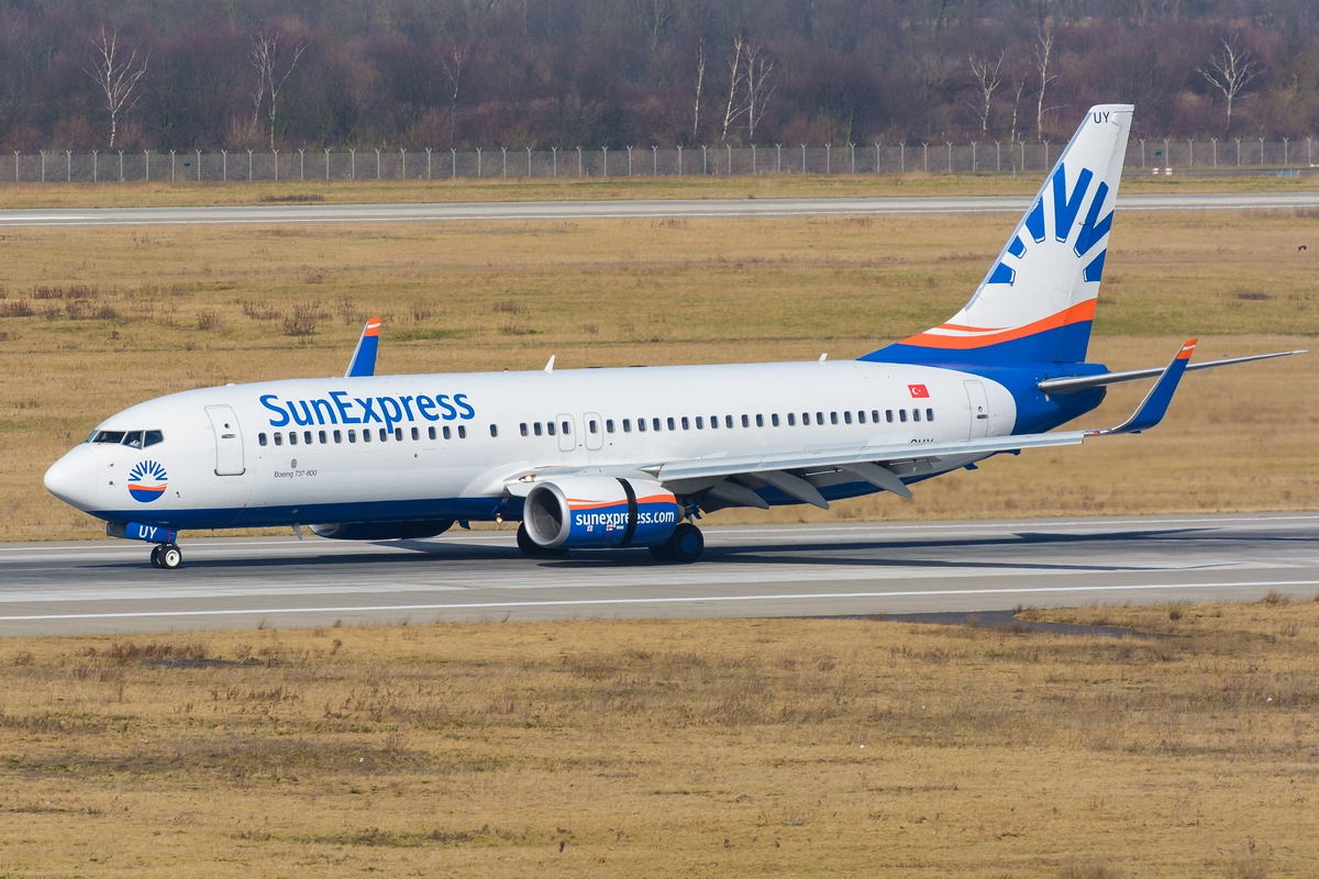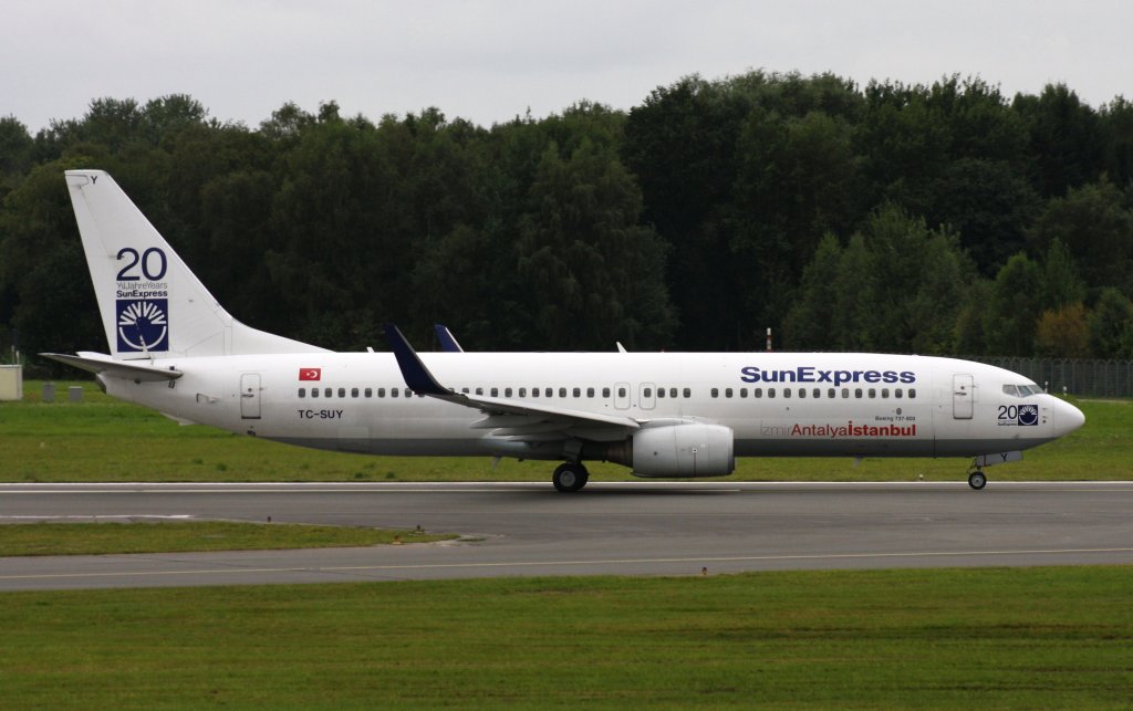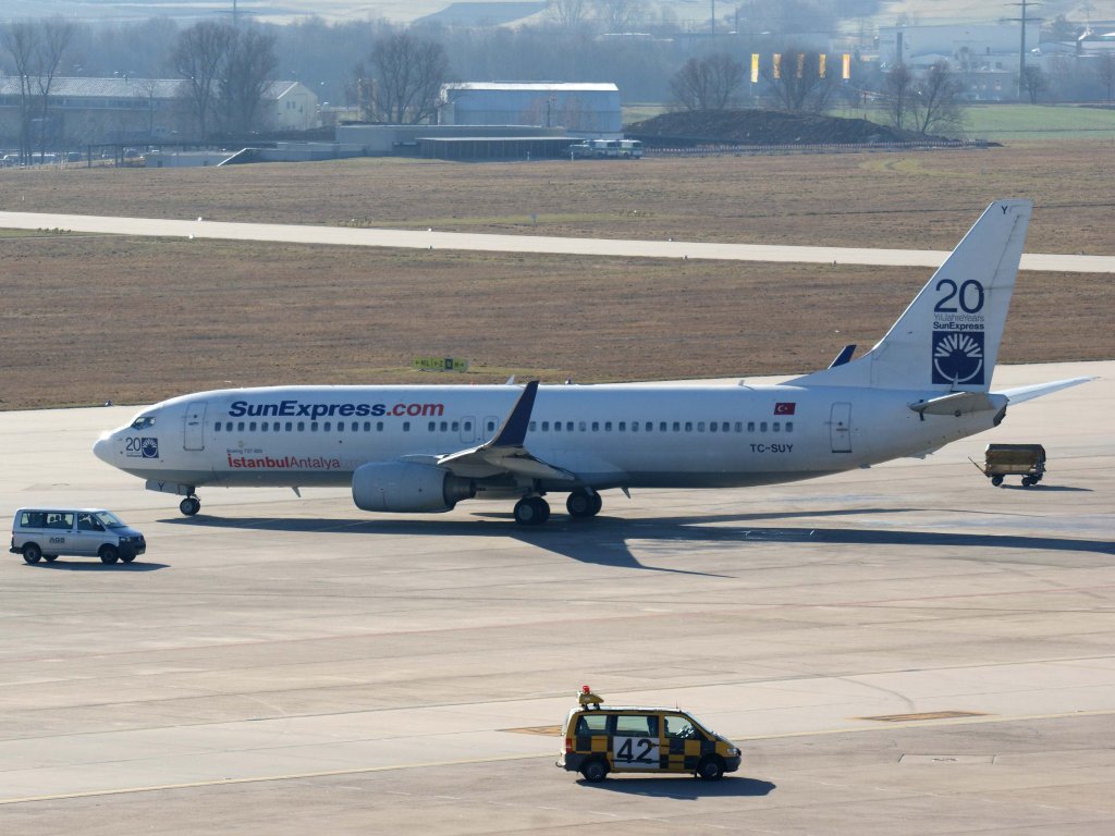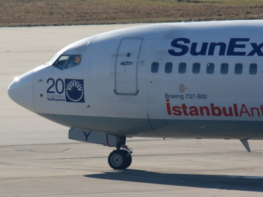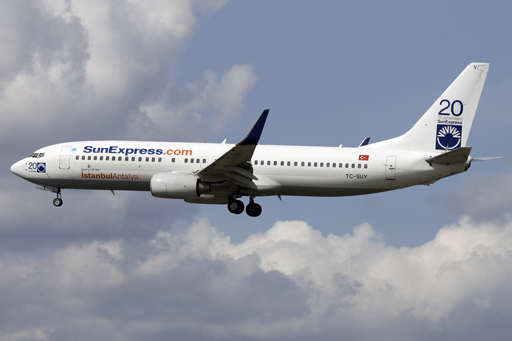 TC-SUY, B737-86N, Saarbrücken EDDR/SCN, 09.03.09, Sun Express Boeing 737-86N is about to touchdown on a wet runway 27 at Saarbrücken (EOS50D + Canon EF-L 1:4.0 300) Friedrich Becker