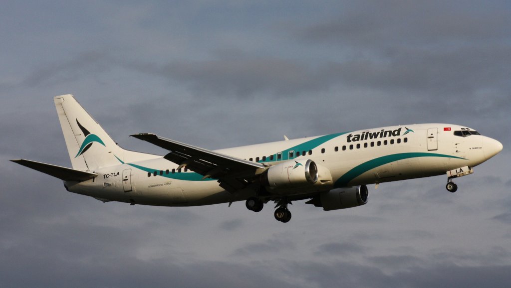 Tailwind B737-400 TC-TLA im Anflug auf 05L in DUS / EDDL / Düsseldorf am 25.04.2011