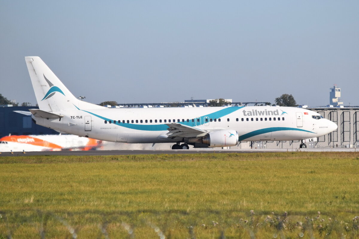 Die 737-400 TC-TLE der türkischen Charterfluggesellschaft Tailwind rollt am 13.09.2015 zur Startbahn des Dresdener Flughafens. Als TWI 306 fliegt die Maschine in den türkischen Badeort Antalya. Christopher Pätz