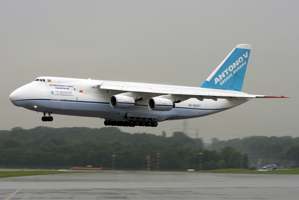 ADB An-124 UR-82027 kurz vor der Landung auf der 23L in DUS / EDDL / Düsseldorf am 25.08.2009