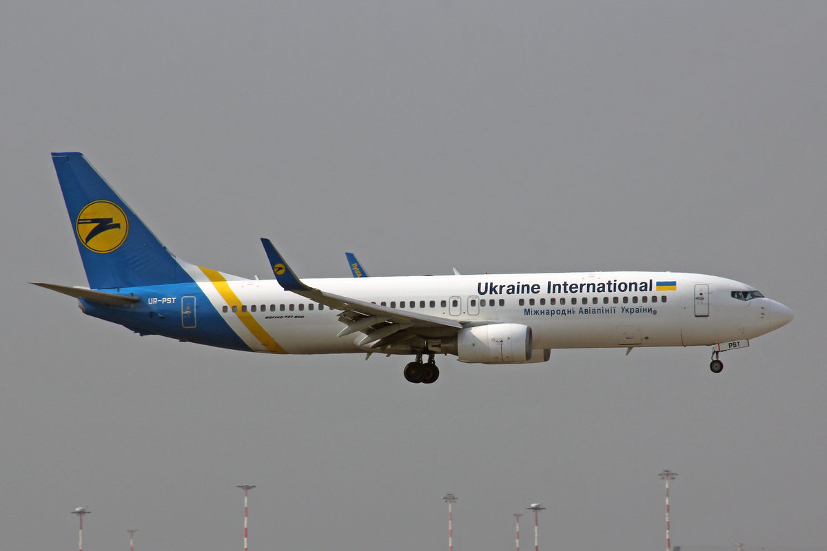 UR-PST Ukraine International Airlines Boeing 737-8AS(WL)  am 06.08.2016 in Frankfurt beim Landeanflug
