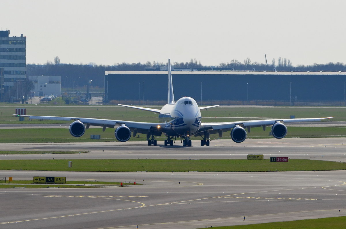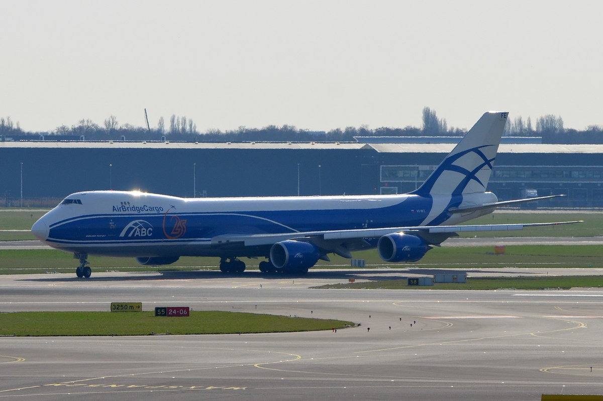 Air Bridge Cargo Boeing 747-83QF VQ-BFE bei der Landung in Amsterdam 12.10.2019