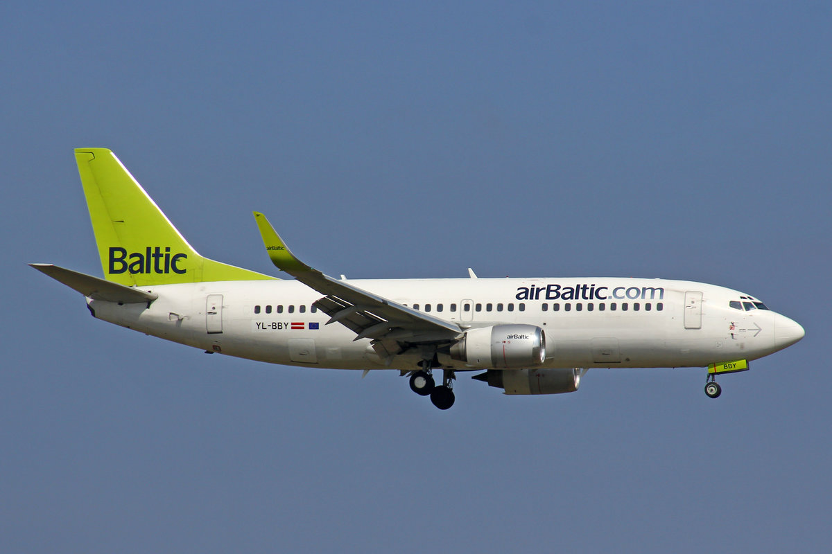 YL-BBY Air Baltic Boeing 737-36Q(WL)  beim Anflug auf Frankfurt am 06.08.2016