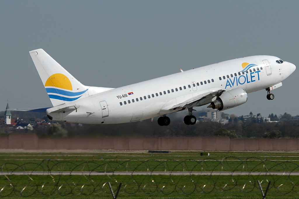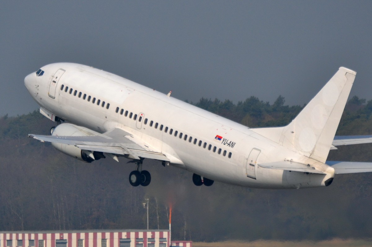 YU-ANI Aviolet Boeing 737-3H9  beim Anflug auf Tegel am 12.09.2016 über Potsdam