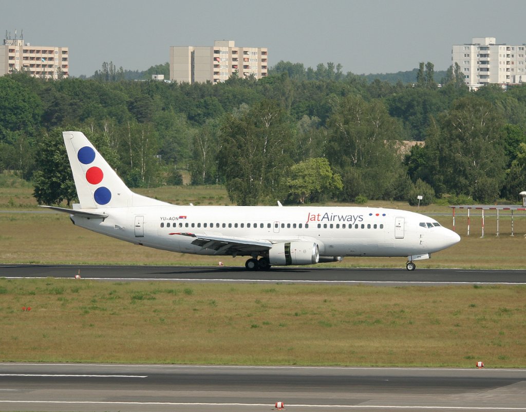 JAT Airways B 737-3Q4 YU-AON nach der Landung in Berlin-Tegel am 22.05.2012