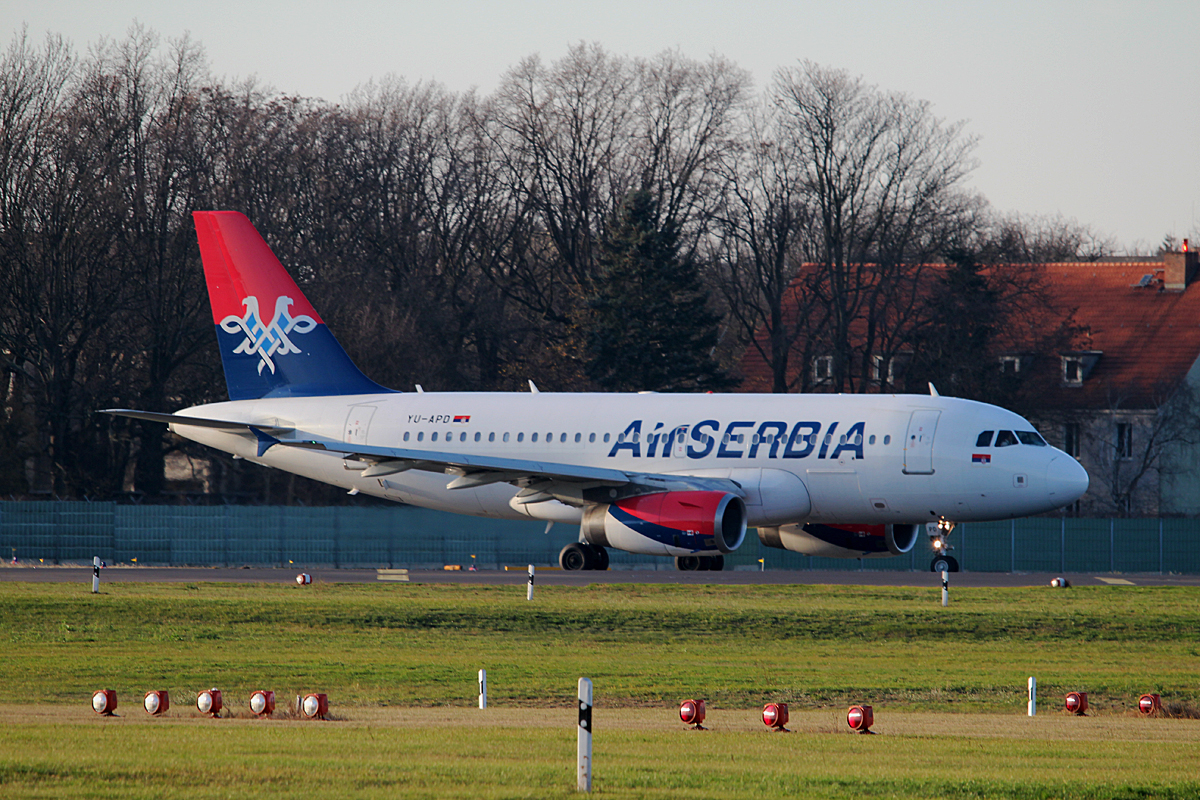 Air Serbia A 319-132 YU-APD kurz vor dem Start in Berlin-Tegel am 06.12-2015