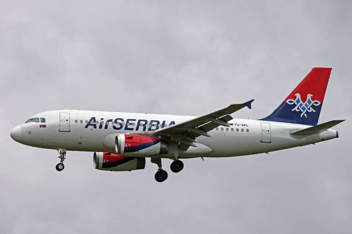 Air Serbia, YU-APL, Airbus A319-132, msn: 4282, 03.Juli 2023, LHR London Heathrow, United Kingdom.