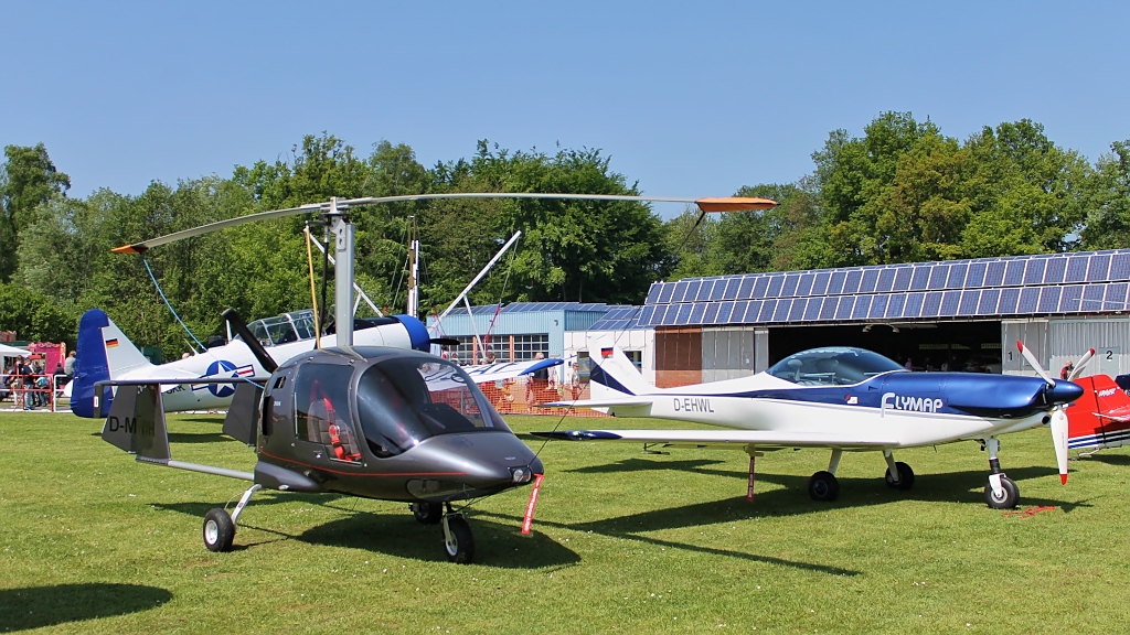 Hallo, das ist übrigens ein Tragschrauber (Druckpropeller und nicht angetriebener Rotor), kein Hubschrauber. Diese Autogyros / Tragschrauber fallen unter die Kennzeichnung D-M... (für UL), Hubschrauber haben D-H...