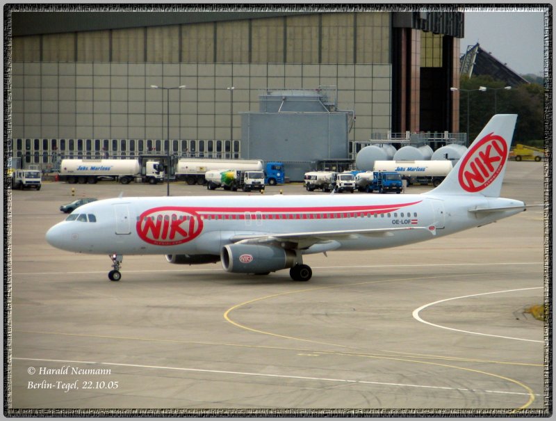 A 320 der östereichischen Niki Airlines soeben gelandet in Flughafen Berlin-Tegel. 22.10.05