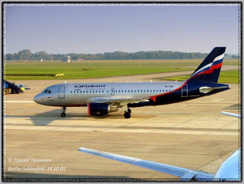 Am 14.10.05 wartet ein Airbus A319 der Aeroflot in Berlin-Schönefeld auf seinen nächsten Flug.