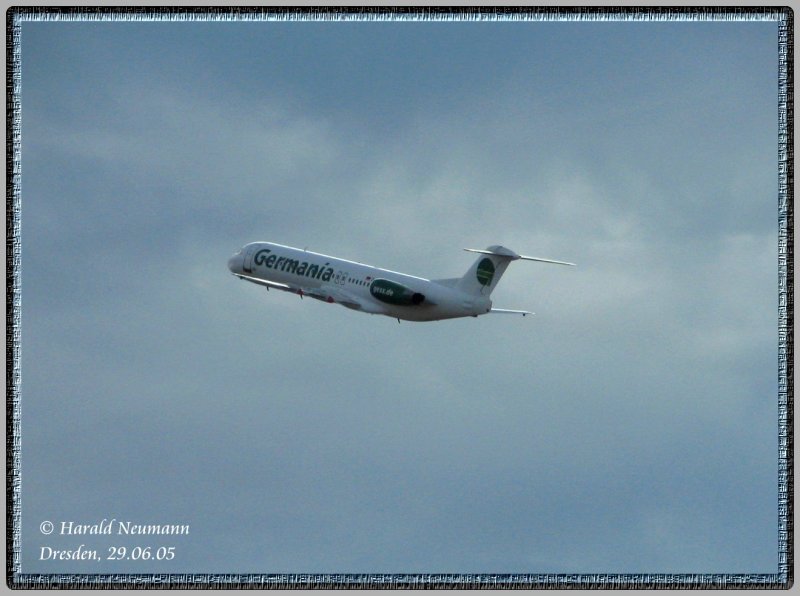 Am Flughafen Dresden ist soeben die Fokker 100 der Germania gestartet. 29.06.05