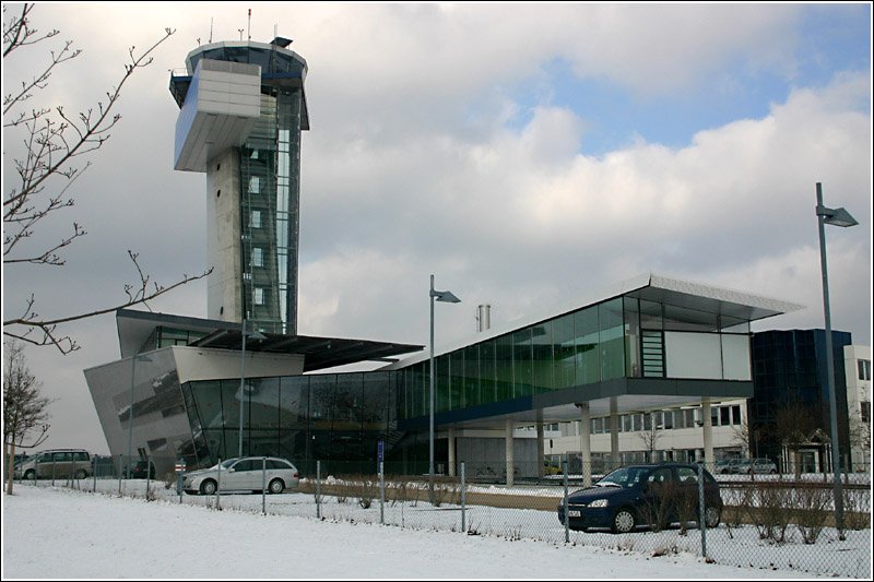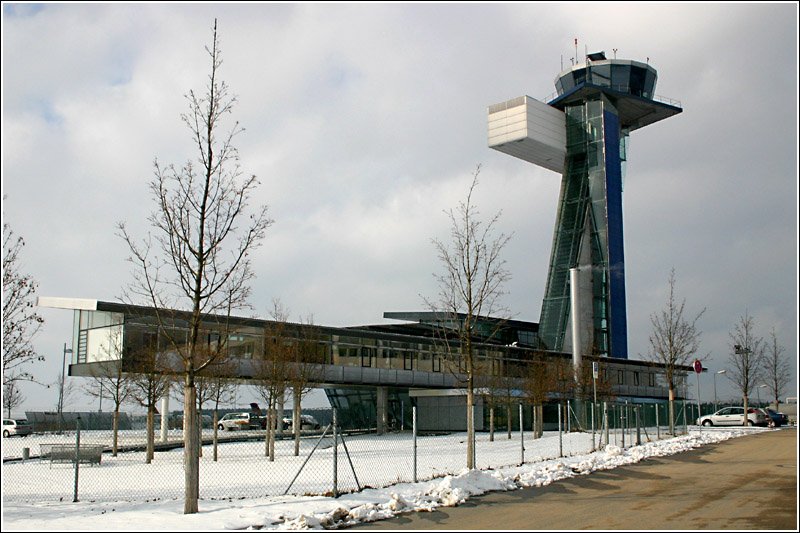 Architektonisch interessant gestalterter Tower am Flughafen Nürnberg. Architekten: Behnisch und Partner aus Stuttgart. 5.3.2006 (Matthias)